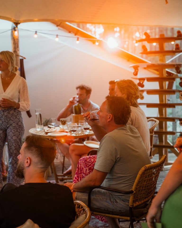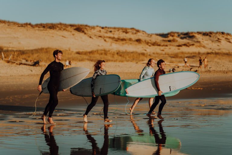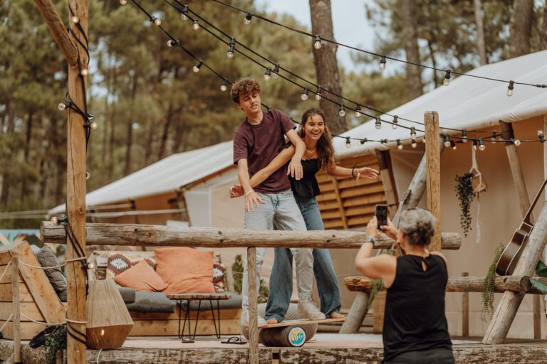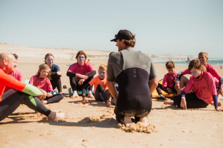 Surf Tribe is een kleinschalig surfcamp voor gezinnen, gelegen tussen de naaldbomen van camping Le Vivier in Biscarrosse. Overdag kun je samen leren surfen, ontspannen aan het zwembad of de mooie omgeving ontdekken. In de avond genieten jullie van gezellige diners en activiteiten of kom je tot rust op het ruime terras van onze luxe lodges.